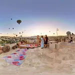 O nosso hotel favorito em Göreme, recomendo muito. A localização e as vistas foram bons. Aproveitei o terraço na laje...